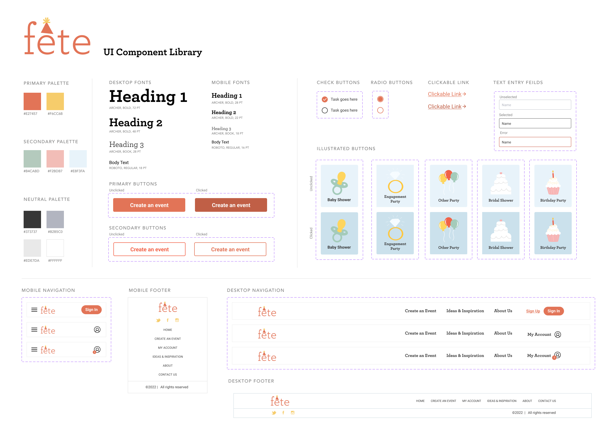 The word lended itself to playful branding by using the accent above the “e” as a party hat. This inspired me to use other graphic illustrations throughout the product to provide visual interest and also keep the product cheerful and enjoyable to use.