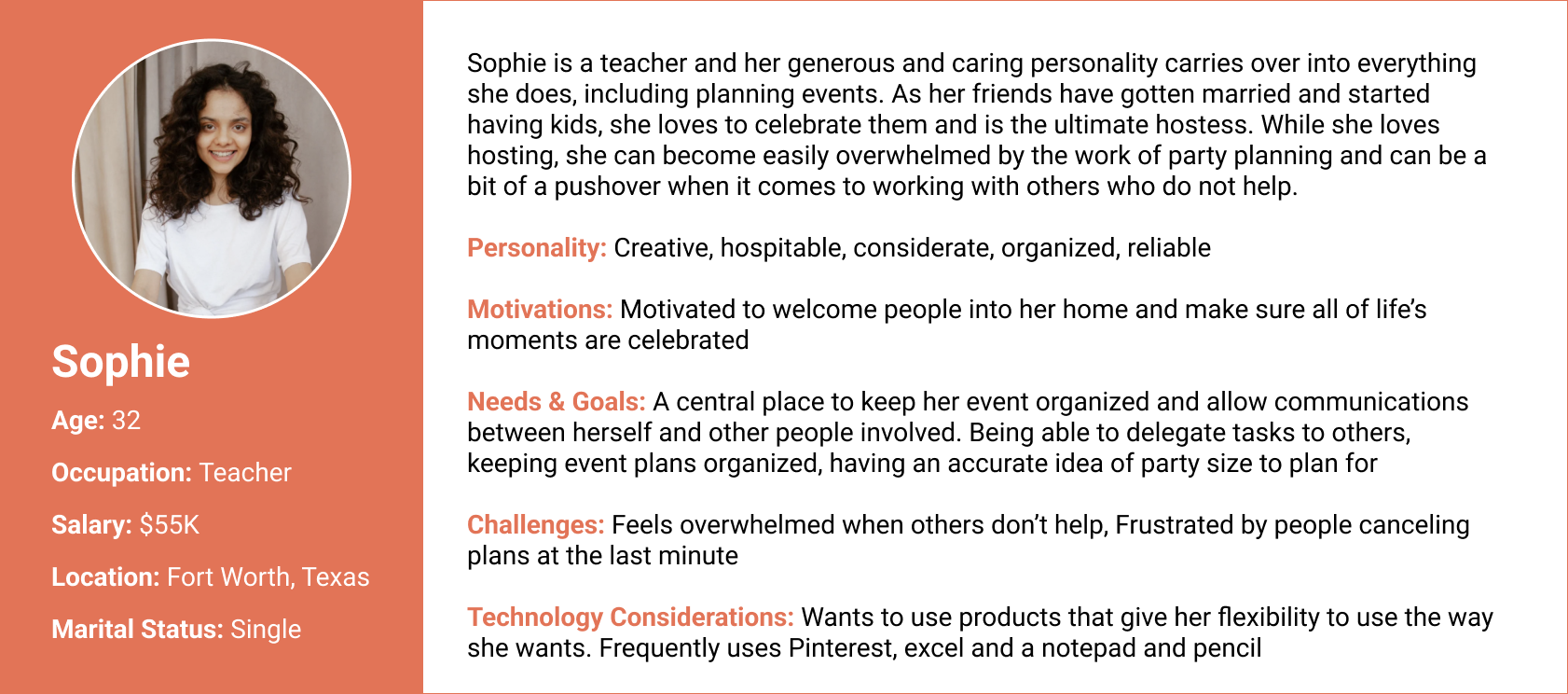 As the end-to-end UI/UX designer, I began by conducting research amongst individuals who are often involved in party planning. The goal was to learn what problems people face when organizing an event so that I could understand what tools they need to plan an event without stress.